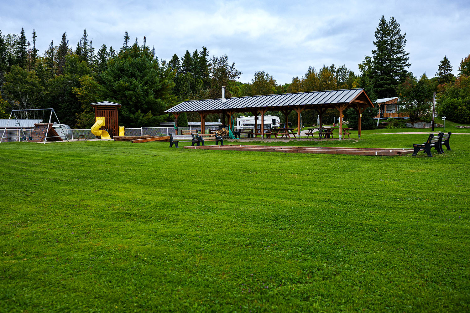 Sur place, les enfants s’épanouissent dans un parc de jeux sécuritaire, tandis qu’une salle communautaire accueillante offre un espace idéal pour se réunir. Vous pourrez également profiter d’une charmante plage en bord de rivière, parfaite pour se ressourcer au cœur d’un environnement naturel exceptionnel. Nos terrains en location comprennent aussi un foyer et une table à pique-nique, vous permettant de profiter pleinement de l’espace.